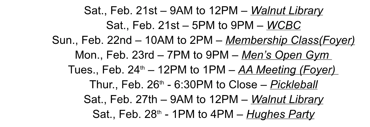 The Rock is also spoken for at the following times. We enjoy offering this facility to our community and we ask that you respect these reservations: