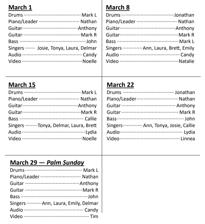 WORSHIP TEAM SCHEDULE